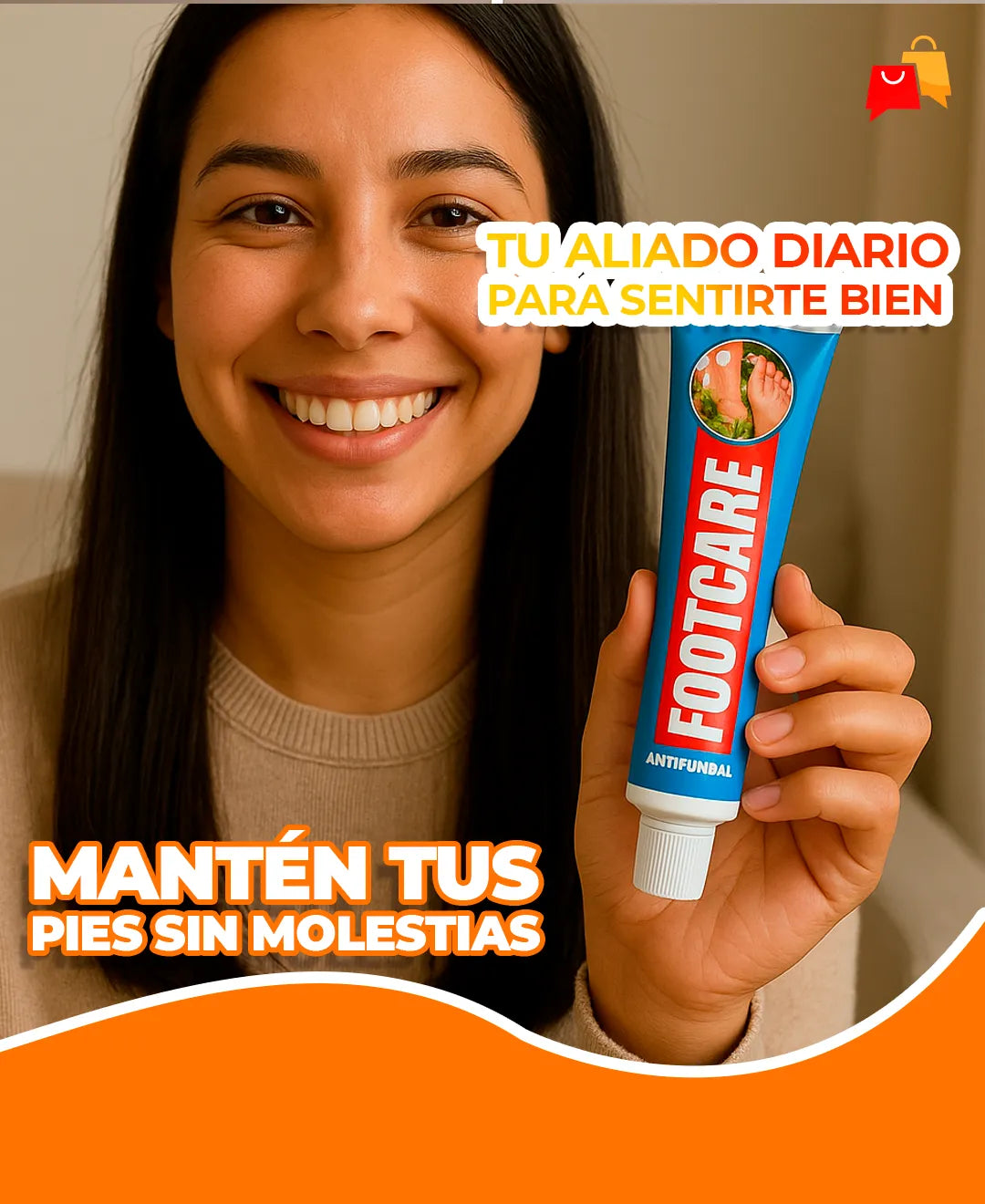 FootCare es una crema tópica que actúa directamente sobre la piel y uñas. Su fórmula ayuda a frenar el crecimiento del hongo, eliminar el mal olor y devolver un aspecto saludable y fresco.