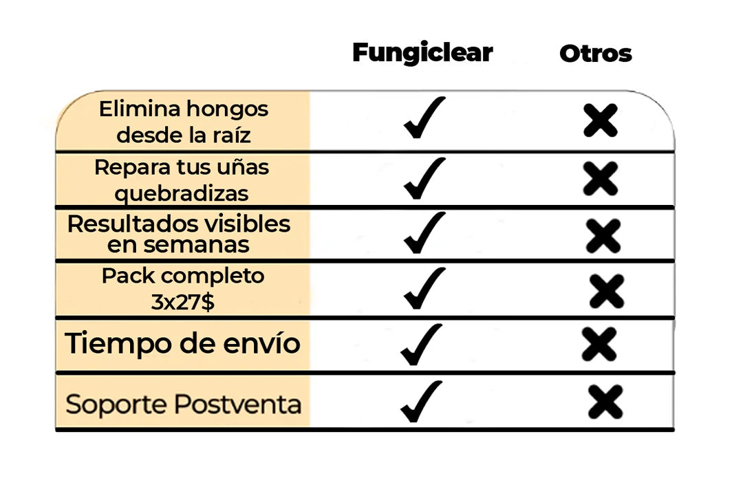 Olvídate de las uñas amarillas, débiles o quebradizas. Con FungiClear, tus uñas recuperan su color natural y aspecto saludable en pocas semanas.