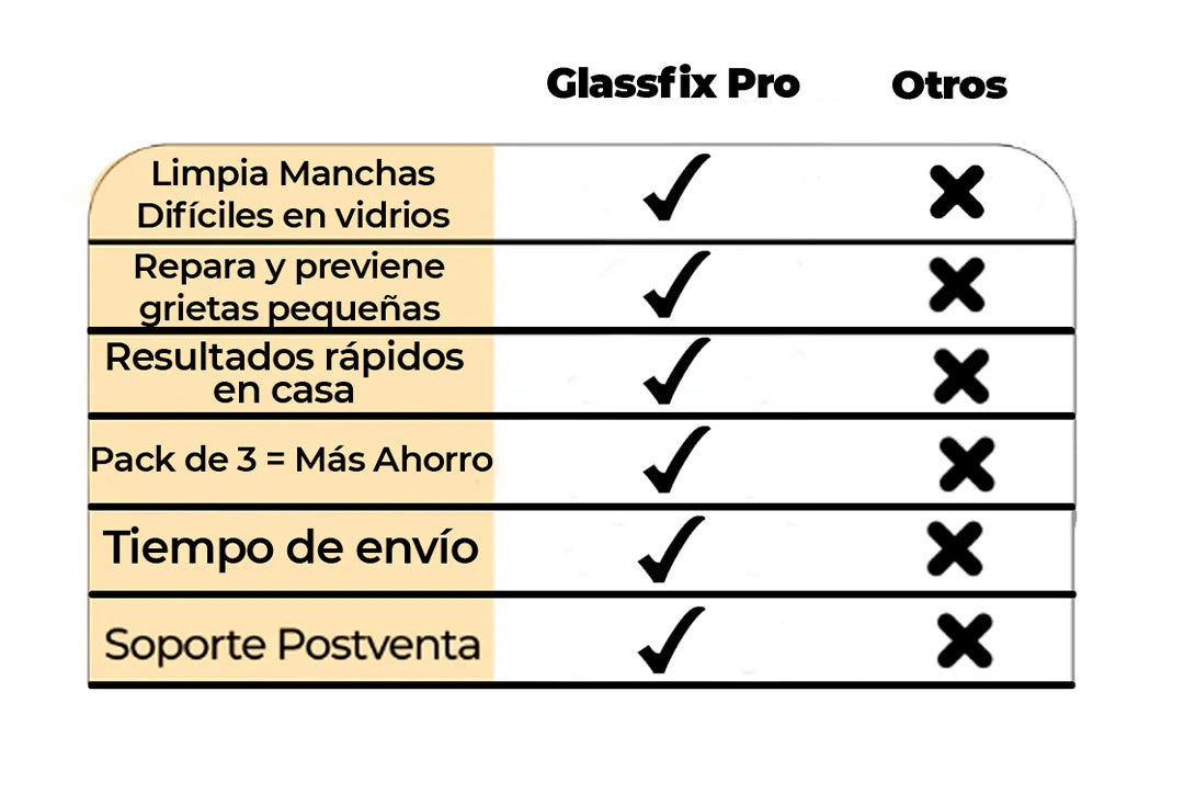 Las grietas pequeñas suelen crecer hasta obligarte a cambiar el parabrisas. Las manchas de lluvia ácida y la suciedad no desaparecen con limpiadores comunes. Con GlassFix Pro reparas y limpias cualquier vidrio mejorando tu seguridad y evitando gastos innecesarios.