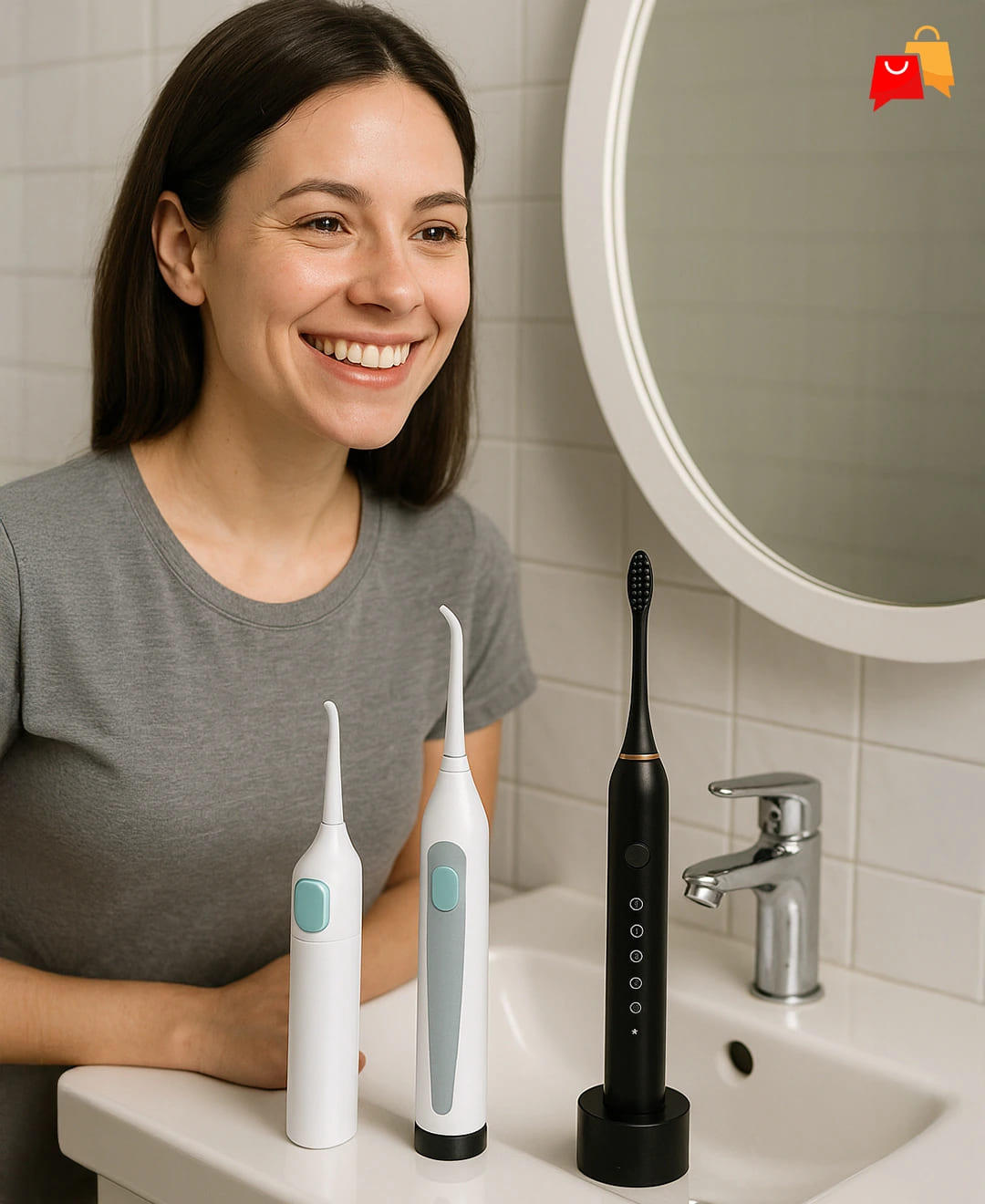 El Kit Sonrisa Total 3en1 incluye un removedor sónico, cepillo eléctrico con 3 cabezales intercambiables y un irrigador portátil. Una rutina completa para eliminar sarro, mejorar tu aliento y blanquear tus dientes sin ir al dentista.